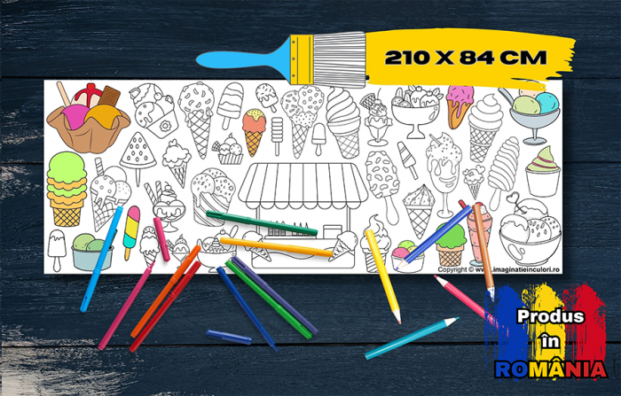 Transformă iubirea copiilor pentru înghețată într-o experiență creativă cu acest banner de colorat! Ajuta-i pe copii să-și dezvolte pasiunea pentru colorat și să se bucure de o activitate interactivă și educativă. PRODUS ÎN ROMÂNIA - EXPEDIAT ÎN MAXIM 48 DE ORE LUCRĂTOARE DE LA COMANDĂ